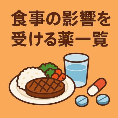 食事が胃の中にあると、吸収が高まり血中濃度が上昇するもの、吸収が妨げられ血中濃度が低下するものがある。