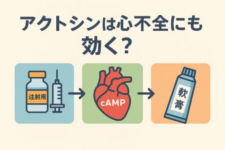 アクトシン注射用(ブクラデシンナトリウム)に注目し、作用機序・心不全への効果・代謝への影響を整理するとともに、外用薬としてのアクトシンとの違いについて勉強します。