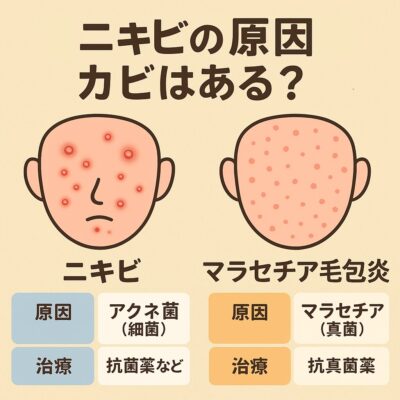 このため「カビが原因のニキビ」という誤った表現が広まりやすいのです。