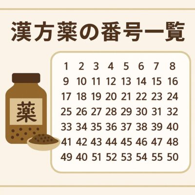 治療薬マニュアルや、昔ツムラからもらった漢方製剤ハンドブックで番号を調べているが、覚えておくに越したことは無い。