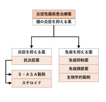 炎症性腸疾患治療薬の薬効分類説明フローチャート
