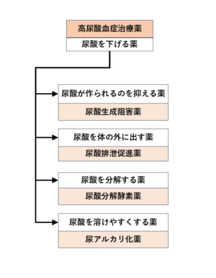 高尿酸血症治療薬の薬効分類説明フローチャート