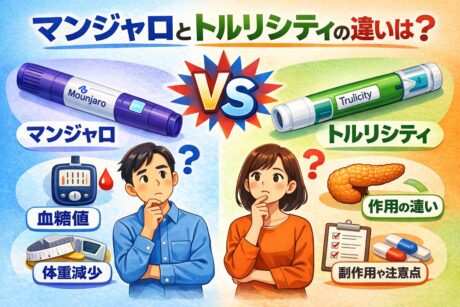 GLP-1受容体作動薬は、血糖値が高いときだけ働く薬なので低血糖を起こしにくいです。また食欲を抑えることで体重が減ります。