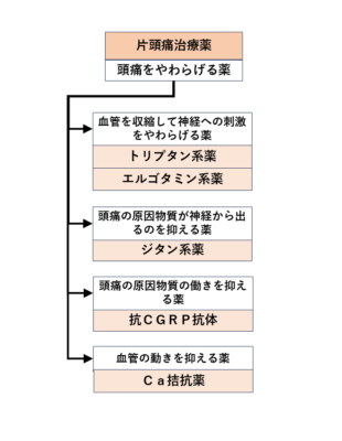 片頭痛治療薬の薬効分類説明フローチャート