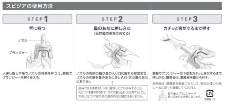 ダイアップ坐剤は小児用であるが、スピジア点鼻液には5㎎・7.5㎎・10㎎と3規格あり、大人でも10㎎を2回使うことで成人適応もある。